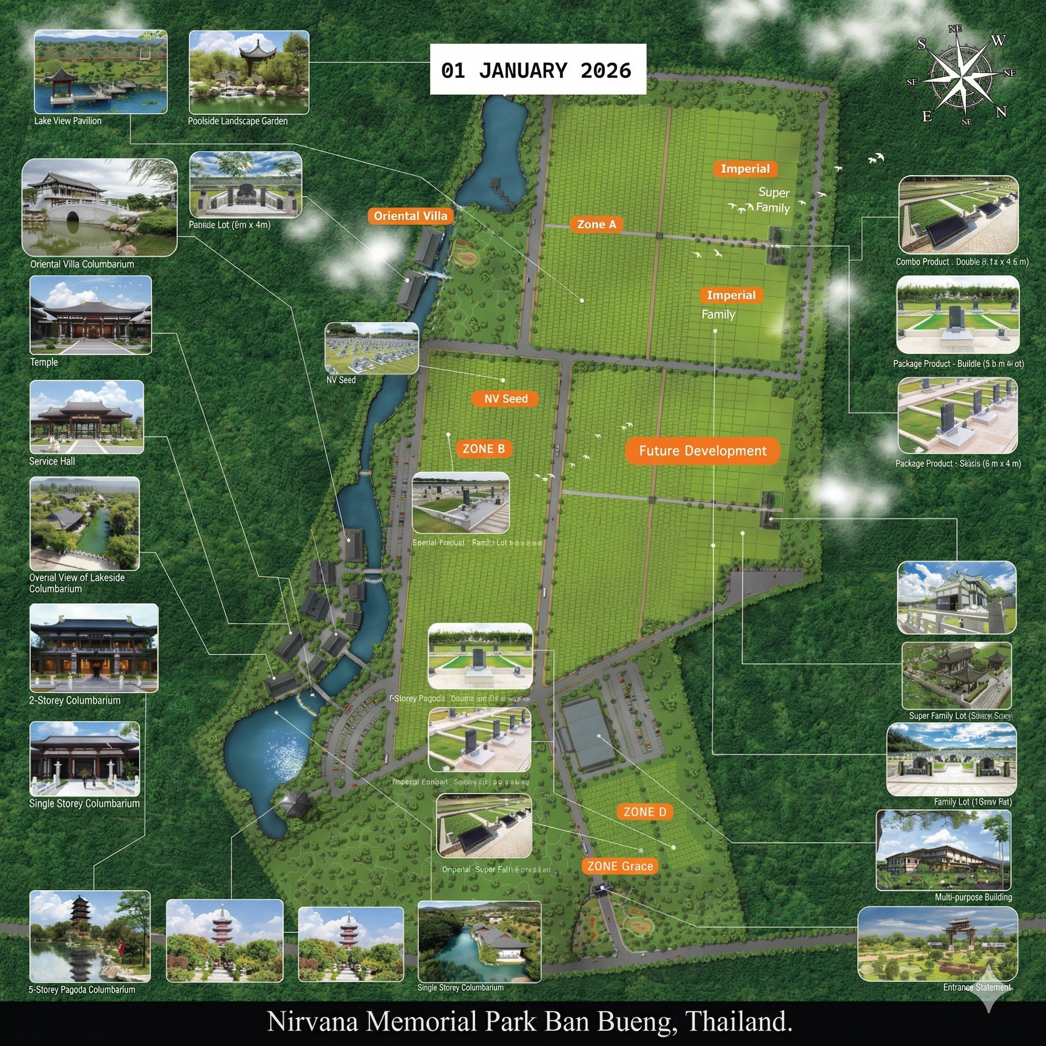 ด้วยความมุ่งมั่นที่จะเปลี่ยนภาพจำของสุสานแบบเดิมๆ ให้กลายเป็นสถานที่พักผ่อนสุดท้ายที่งดงาม สงบร่มรื่นสไตล์รีสอร์ท และถูกต้องตามหลักฮวงจุ้ยชั้นสูงที่สุด เราเชื่อว่า “การจากลาไม่ใช่จุดสิ้นสุด แต่คือการสืบต่อความรักและความกตัญญู” สถานที่แห่งนี้จึงถูกสร้างขึ้นเพื่อสร้างความสบายใจให้กับคนเป็น และเป็นเกียรติยศอันสูงสุดแด่ผู้ล่วงลับ